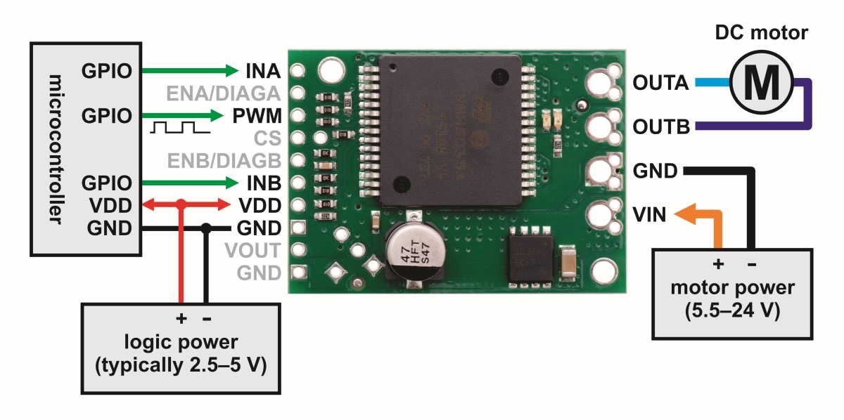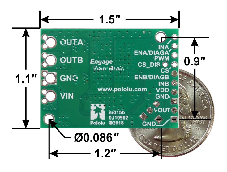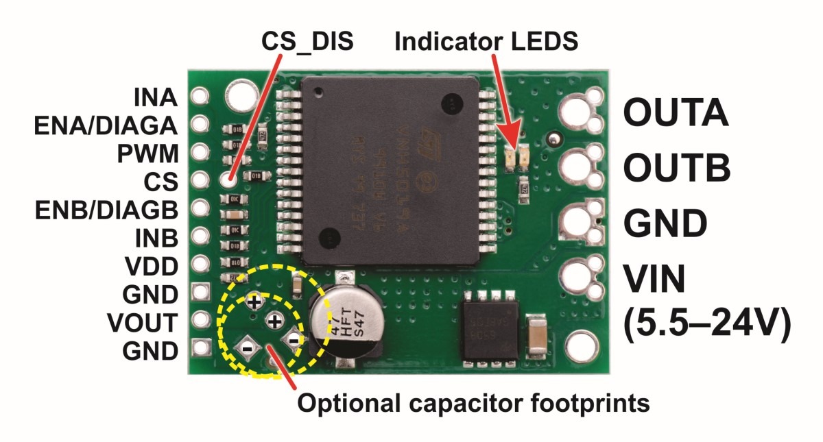 דוחף מנוע עם שבב VNH5019 של ST הכולל משוב חישת זרם (מתח אנלוגי פרופורציונלי לזרם המנוע). יחד עם הגנה מובנית מפני מתח הפוך, מתח יתר, מתח נמוך, טמפרטורת יתר וזרם יתר, תכונות אלו הופכות מוצר זה לדוחף מנוע נהדר למטרות כלליות.